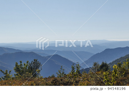 Mountain peaks flee to the horizon similar to waves