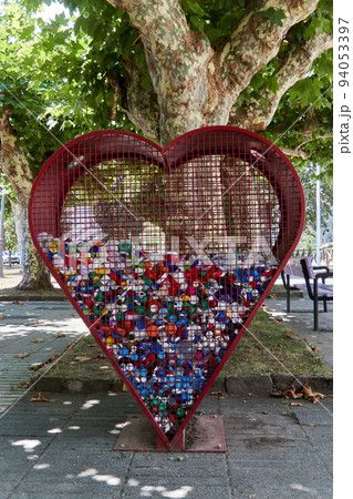 Heart shaped container for recycling plastic caps.