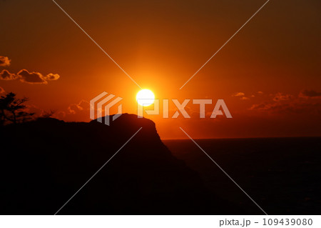 夕焼けの海と島