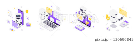 Friendly Modern Isometric Vector Illustration AI Robots Communication Mobile Data Analysis And User Interaction Technology