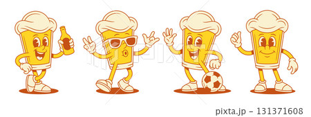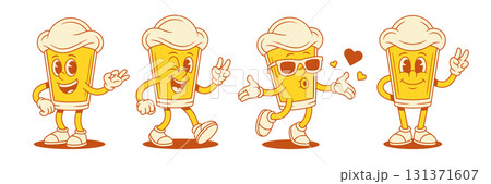 Funky happy beer glass cartoon character emoticon set vector flat illustration