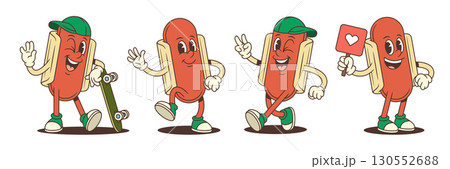 Cute cool hot dog cartoon character set contoured vector flat illustration