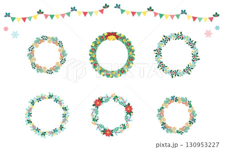クリスマスリースのベクター素材イラストセット