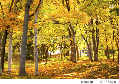 黄金色に輝く黄金のイチョウ並木