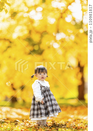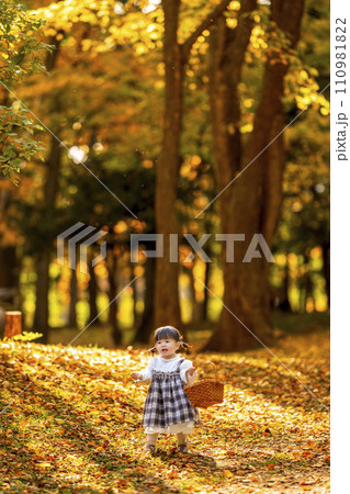 秋の公園で遊ぶ女の子