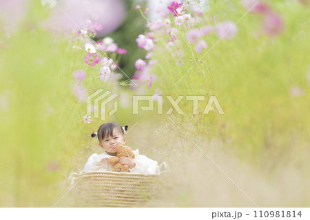 花を摘む女の子