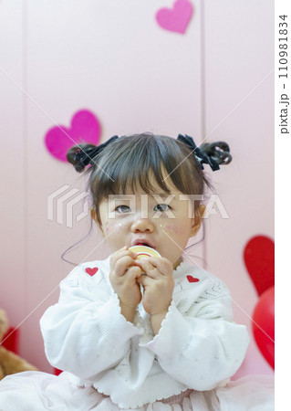 バレンタインにぬいぐるみで遊ぶ女の子