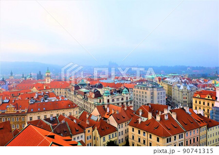チェコのプラハからみえる市街地とプラハ城