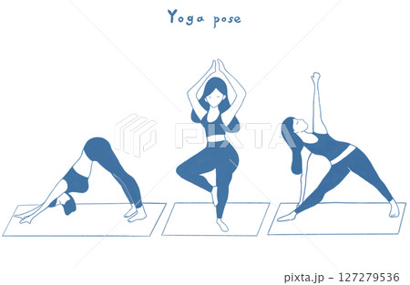 ヨガのポーズをする女性のイラスト素材セット