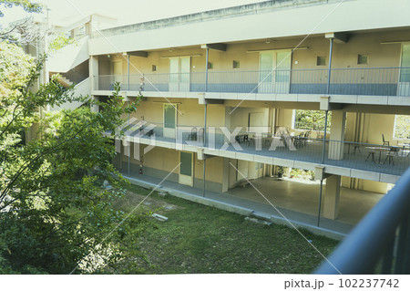 海の見える丘の上に立つアパートのテラス
