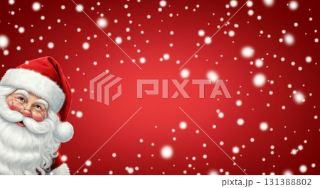 Festive Santa Claus illustration with snowflakes on vibrant red background for holiday cheer