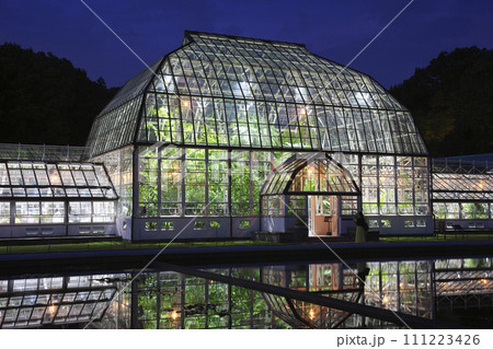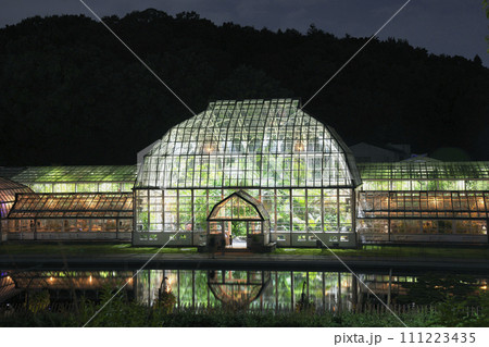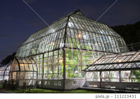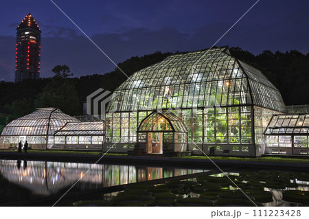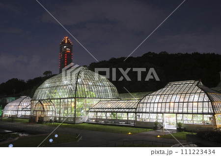 夏季ライトアップされた、名古屋市東山植物園温室