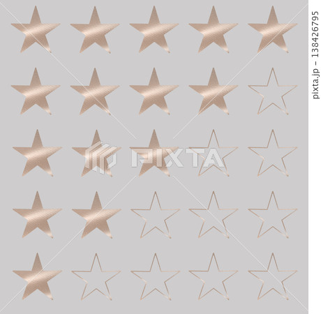 Rating scale represented by identical empty five point symbols. Customer review, feedback score, quality evaluation concept..