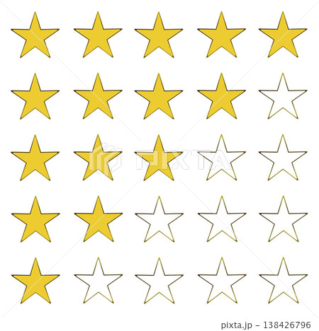 Five gold stars arranged as a rating symbol representing positive feedback, evaluation, and high