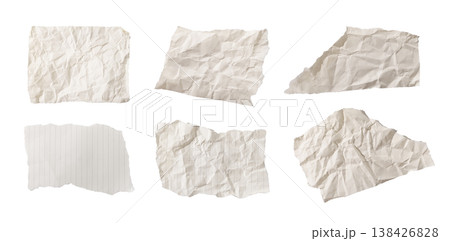 Torn paper scraps with rough ragged edges and textured surfaces. Blank ripped pieces isolated on