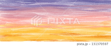 クレヨンで描いたような夕焼けのイラスト