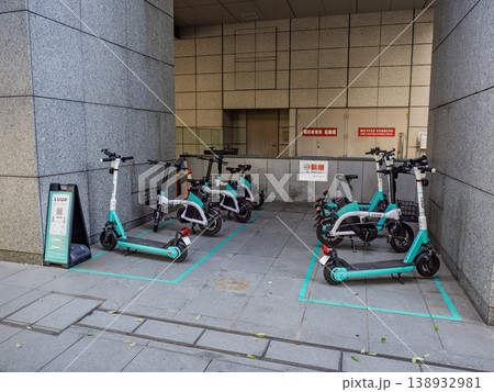 都市部の歩道に設けられた無人管理の有料駐輪スペースと料金精算機
