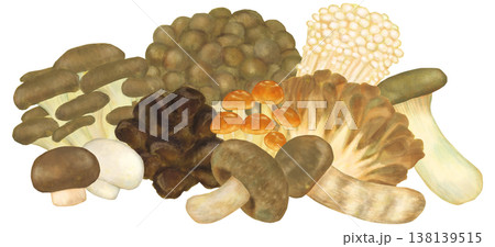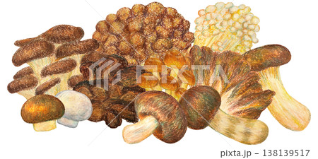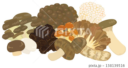 模様の入った茶色のキノコのイラストセット 小さめ ベクター素材