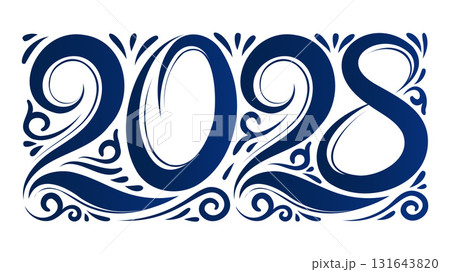 2028 New Year Number, with Blue Ornate Vector Style