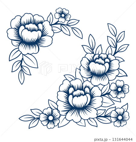 Chinese Style Decorative Peony flower Elements with Blue White flat design