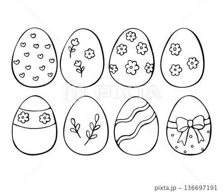 Hand Drawn Easter Eggs Coloring Illustration Set