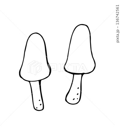 Hand Drawn Mushrooms Outline Illustration Minimal Style
