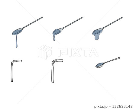 水分の薄いとろみ中間のとろみ濃いとろみととろみのレベルで使用可能な道具の絵