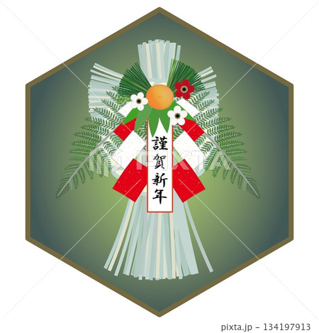 六角背景のついたしめ飾りのイラスト