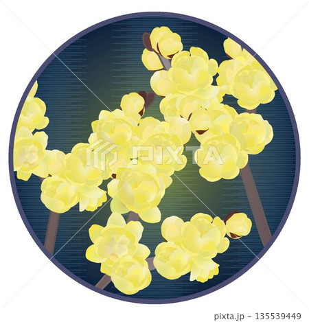 円形背景のついた蠟梅のイラスト