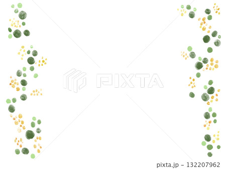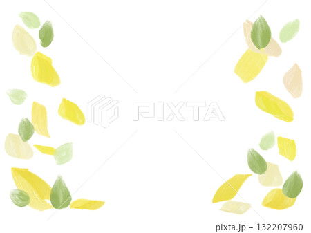 舞い散る花のような落ち着いた黄色と緑のふわふわな滲んだドットあしらいイラスト