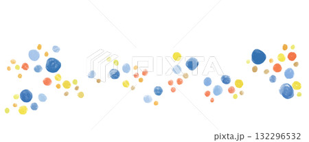 黄色や黄緑やオレンジのドットの流れるあしらいイラスト