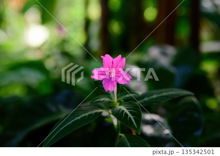 Pink President canna flowers blooming in garden with large green leaves, bright summer floral scene with selective focus and natural sunlight