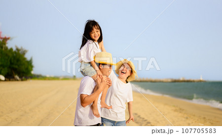 Happy family enjoying together on beach on holiday vacation, Family with beach travel, People enjoying with holiday vacation, High quality photo