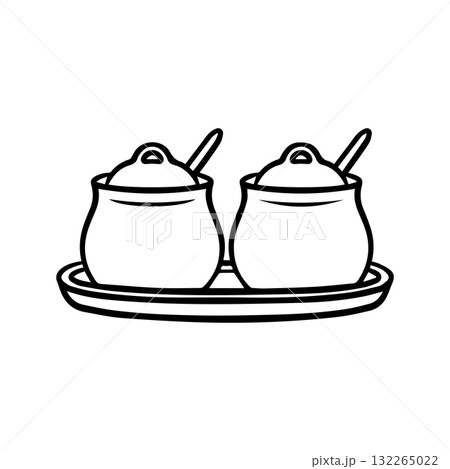 A culinary doodle illustration for a cafe or restaurant menu. A kettle, saucepan, and potholder.