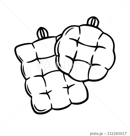 A set of oven mitts. Doodle illustration for menu design. Logo for a bakery, cafe, or restaurant. Kitchen utensils.