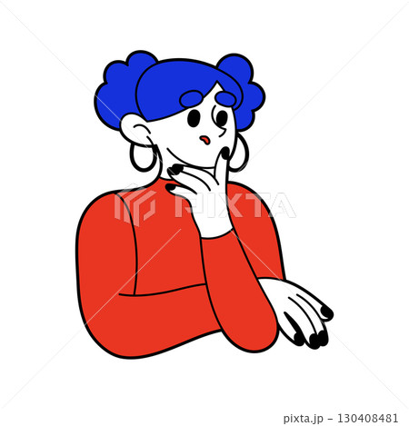 Modern flat illustration of a fashionable stylish girl who thinks, reflects, doubts, evaluates, listens attentively. Illustration for web design and advertising.