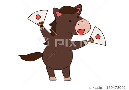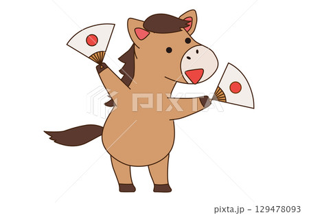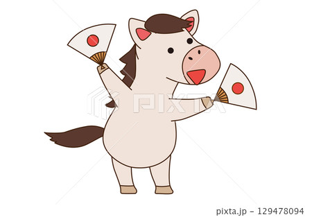 馬があっぱれと扇子を両手に持つベクターイラスト