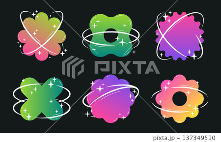Minimalist oval frames. Abstract y2k shapes with stars and sparkles, modern geometric retro frames flat vector illustration set. Outline Y2K aesthetic figures
