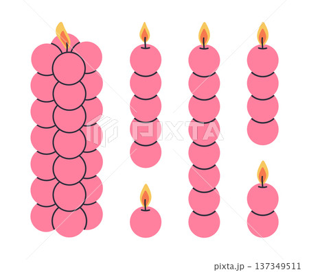 Bubble aroma candles. Burning aromatic wax candles, pink decorative home interior aromatherapy candles flat vector illustration set. Cute candles isolated on white background