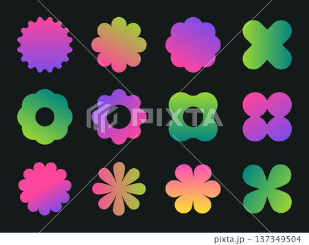 Abstract flower shapes. Bright brutalist y2k floral figures, geometric contemporary bauhaus graphic elements flat vector Illustration set. Isolated modern design floret shapes