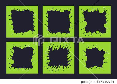 Cartoon bubble cloud frames. Abstract puffy cloud borders, cute chubby figures flat vector illustration set. Hand drawn isolated bubble frames