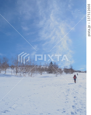 2月の雪原を歩くハイカー(20260220075321)