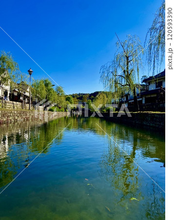 紅葉と水路のある風景