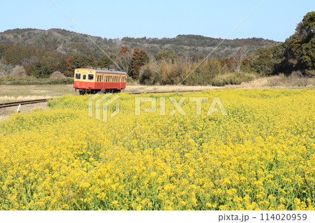 菜の花畑を走る小湊鉄道 石神菜の花畑
