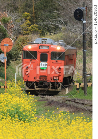 菜の花畑を走る小湊鉄道 石神菜の花畑