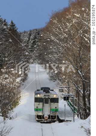 雪の中を走るキハ150 函館本線山線 比羅夫駅