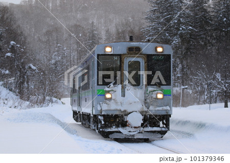 雪の中を走るキハ40 函館本線山線 比羅夫駅