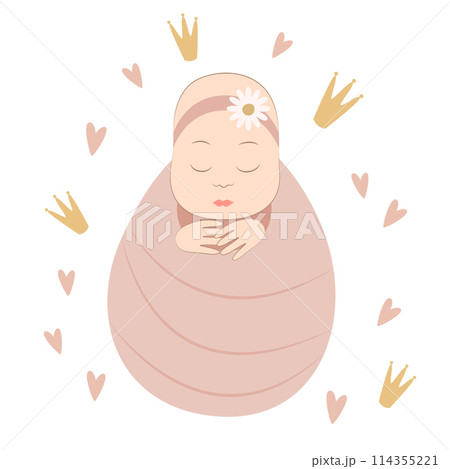 Vector illustration of a baby boy on white background. Boy wrapped in a cocoon. For postcards, stickers, stickers, tags, posters.