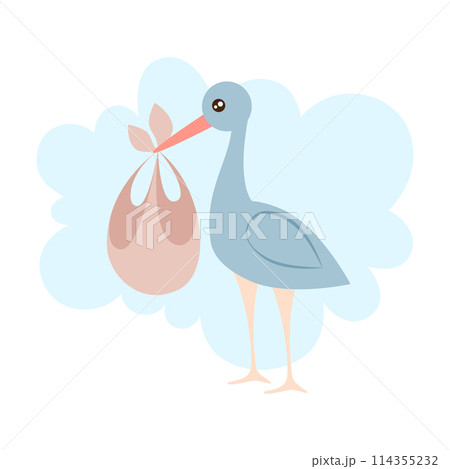 Stork brought a newborn baby. Vector illustration on white background for design of cards, posters, stickers, stickers.