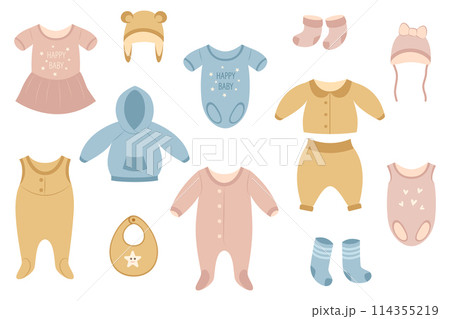 A set of clothes for babies. Fashionable clothes for girls and boys. Vector illustration.